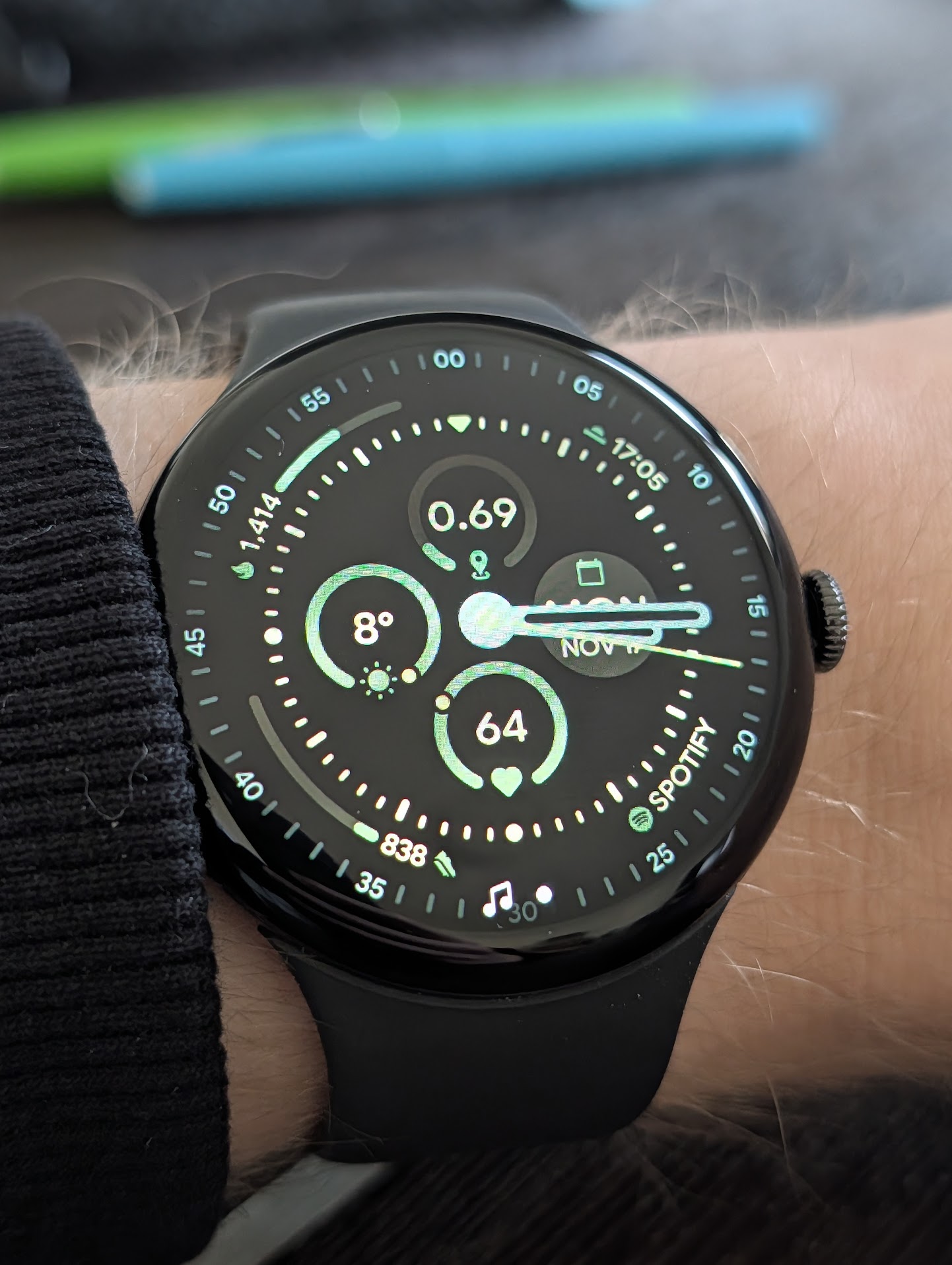 ⬆️📷 Pixel Watch 4 in 45mm. “Field” face with “Meadow” color.
